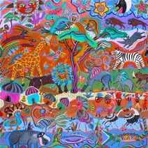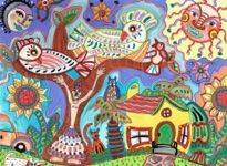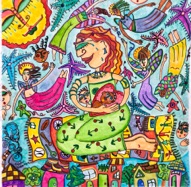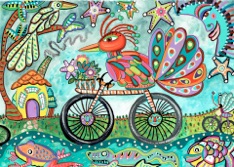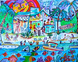 Robbin, a native Texan and Texas A&M graduate is a multi-media artist working with canvas, wooden and metal collages and photography. Robbin is a 4th generation folk artist raised with strong encouragement to pursue her art. Her portfolio is colorful and whimsical emphasizing a folk art style.  Robbin, who comes from a long line of family artists, is inspired by her travel  in Europe, Latin America, South America, Asia, Hawaii, and the Caribbean. She currently is represented by  “Fish Face” in Palm Passage ,St. Thomas, Virgin Islands & “Texas By Design” in the Arts District of Rockport ,Texas.  Featured in “Bay Woof” Bay area dog magazine and art selling at the Soggy Dollar Bar in the BVI & on apparel at Foxy’s on Jost Van Dyke.